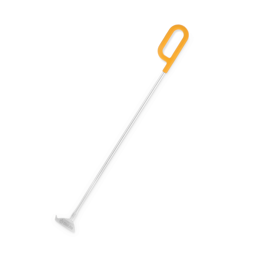 Designed for use with BioLite FirePit. The poker's broad flat edge helps stoke fuel and ensure logs are properly stacked for ideal airflow while the curved point hooks onto the FirePit's fuel rack for easy adjustment to the charcoal or wood setting.
