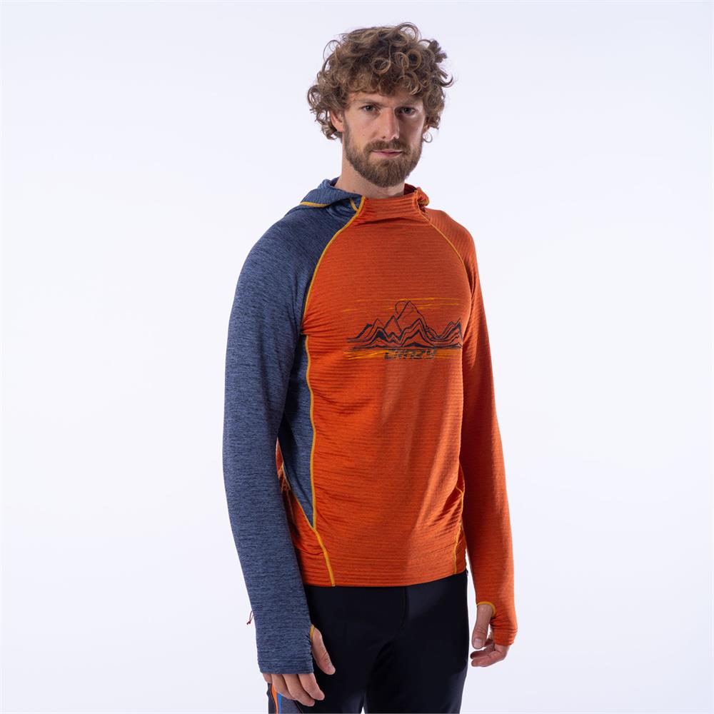 The CRAZY PULL DIRECTOR is a functional mid-layer hoodie pullover that blends modern style with excellent insulation and breathability — ideal for mountain trekking, everyday outdoor use, and light activities. It is made from a new wavy High Performance fabric, offering a great balance between thermal regulation and airflow, with a distinctive tactile and visual feel.
