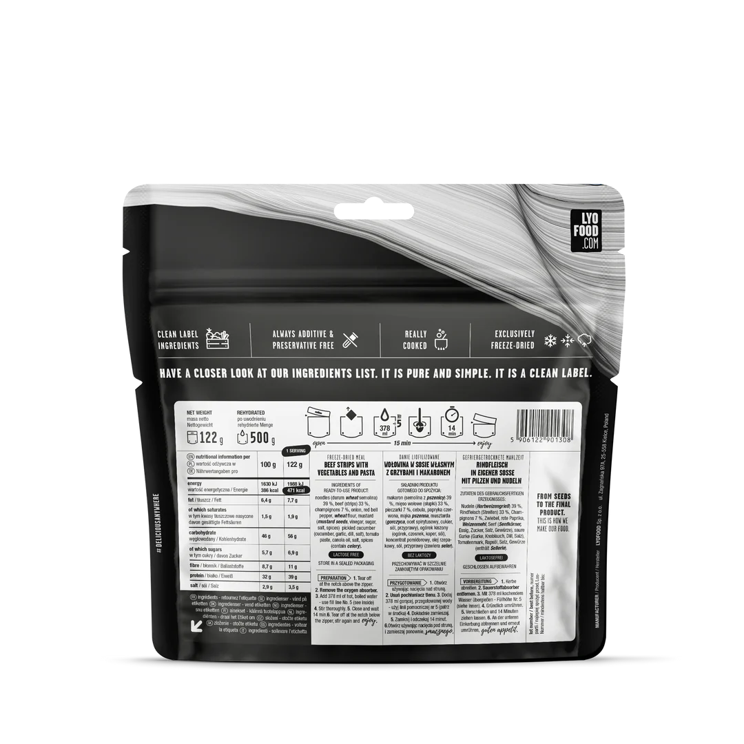 Long shelf life: LYO EXPEDITION meals can be stored for a long time. Since the water content is being removed during the freeze-drying process, microorganisms and enzymes action are inhibited. Each pouch is hermetically sealed and contains an oxygen absorber.