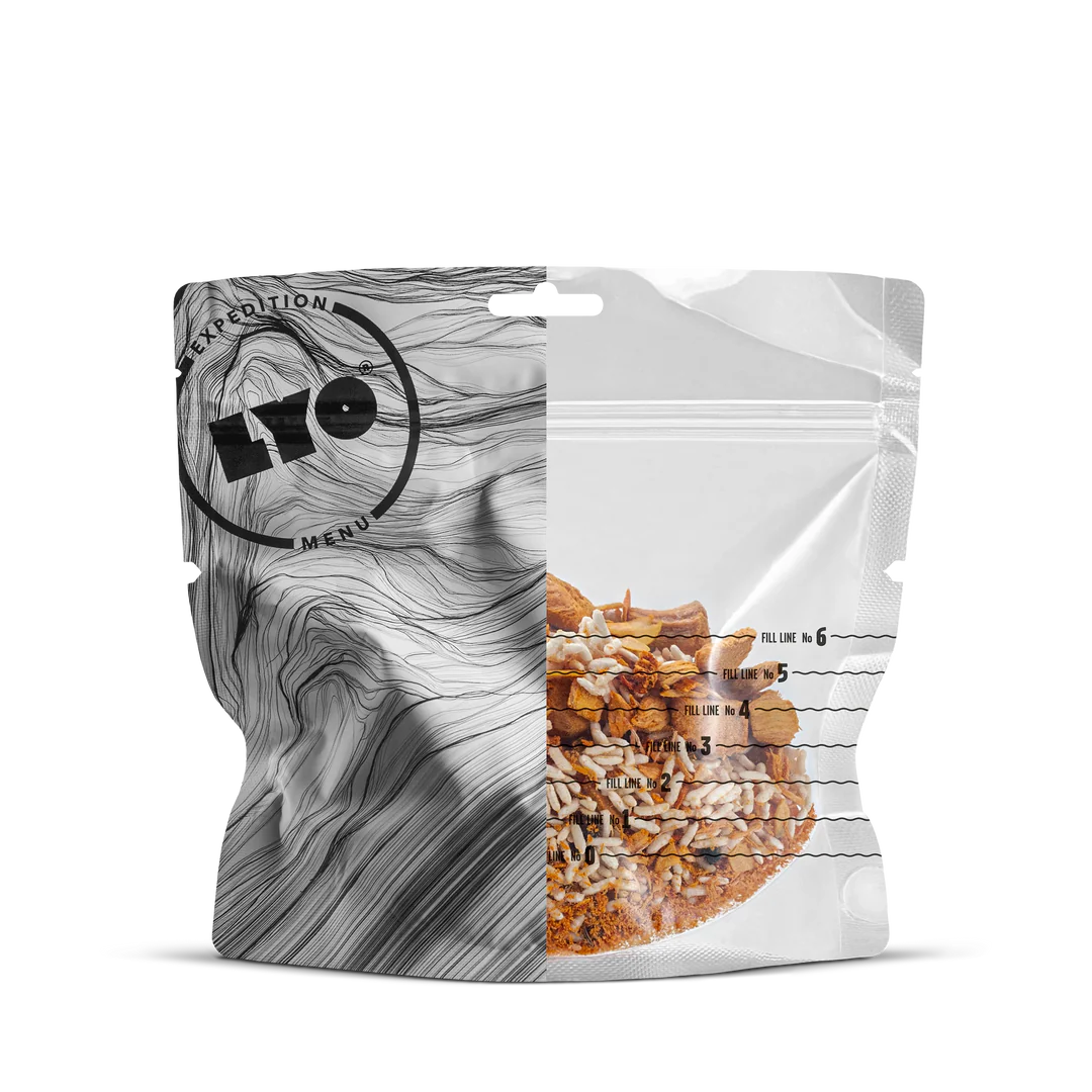 The real taste of a home-made dish: We pay attention not only to the freeze-drying process but also to the way of preparing our meals. We only choose high quality ingredients and always cook every meal before freeze-drying it. This ensures the real, fresh taste that makes LYO EXPEDITION meals so exceptional. Other providers of freeze-dried meals mix the ingredients after they have been cooked separately. We don’t.