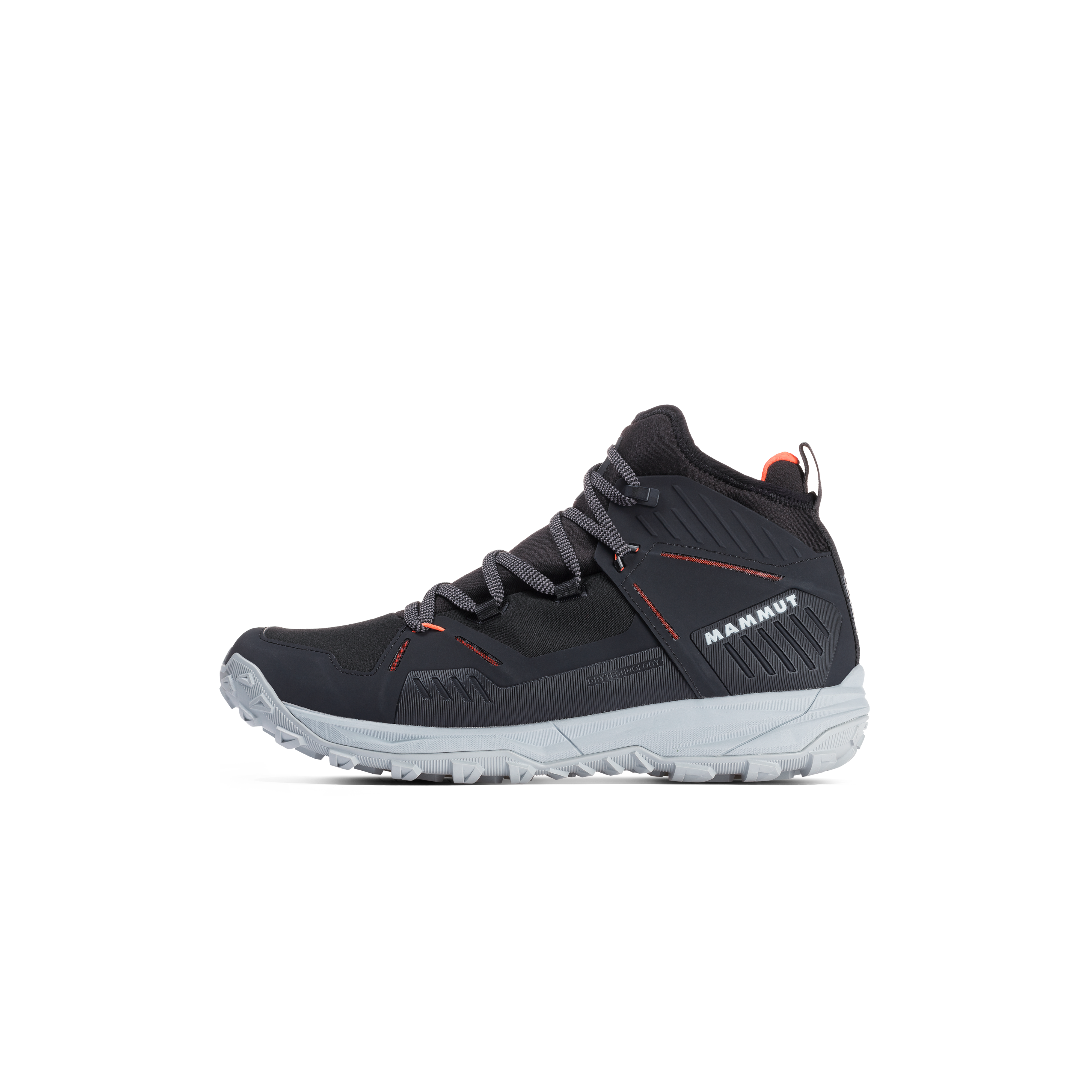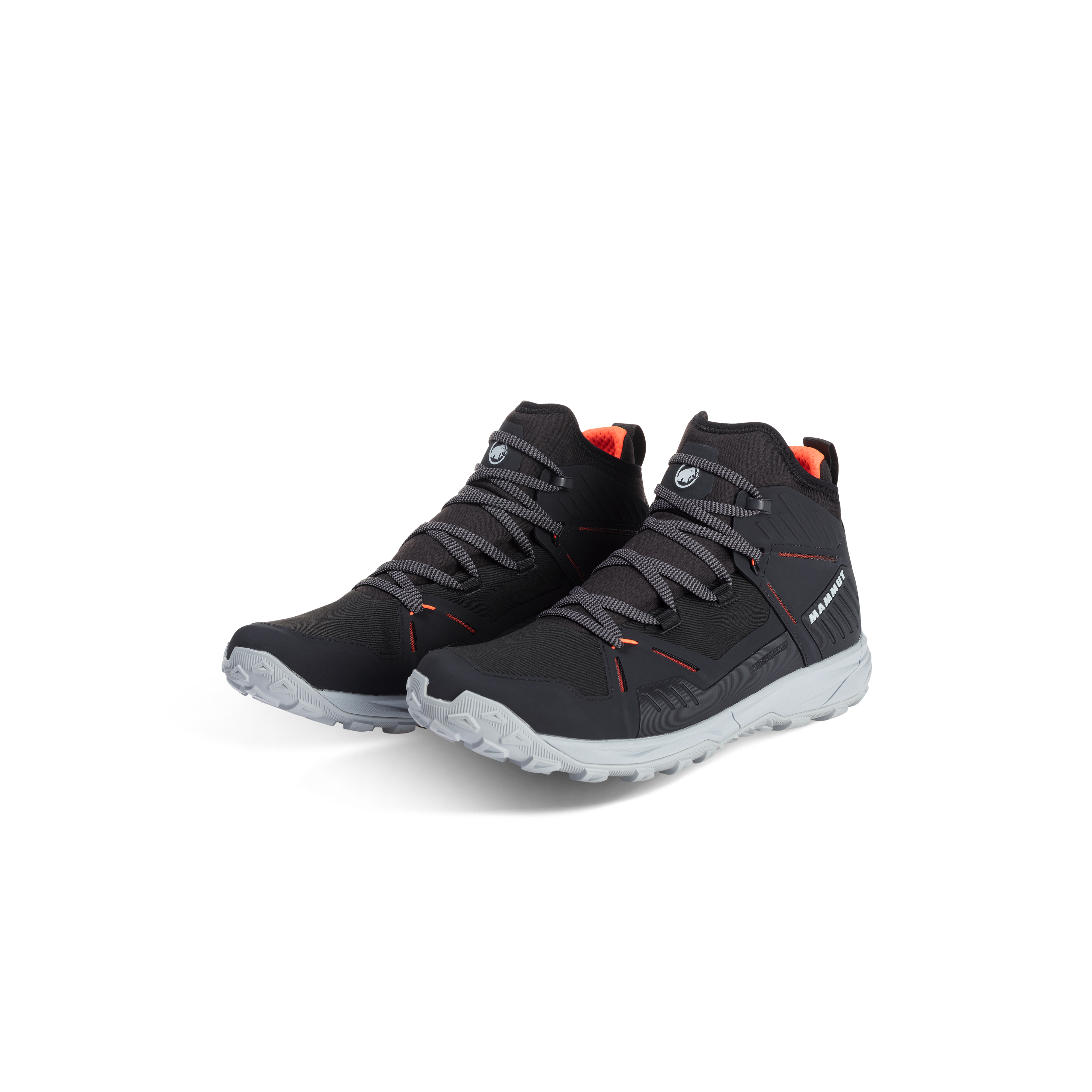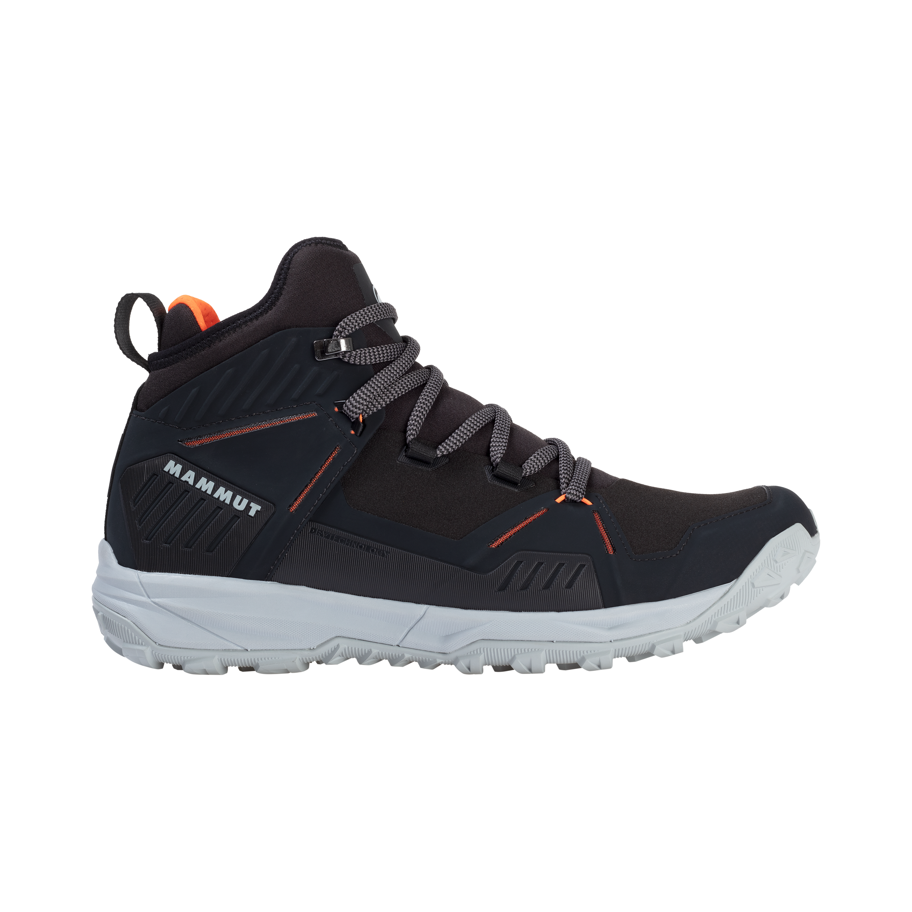 Saentis Pro WP Men. The stylish winter sneaker. Thanks to the direct interaction between the lacing and Base Fit technology, this shoe provides excellent support and prevents blisters from forming. The Michelin OC Compound ensures an excellent grip, while Mammut DRYtechnology prevents moisture penetration. The winter sneaker comes with a softshell upper material with a sock-like fit for increased comfort and a distinctive look.