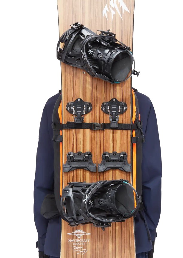 U-frame increases carrying comfort and load transfer with attached skis or snowboard
