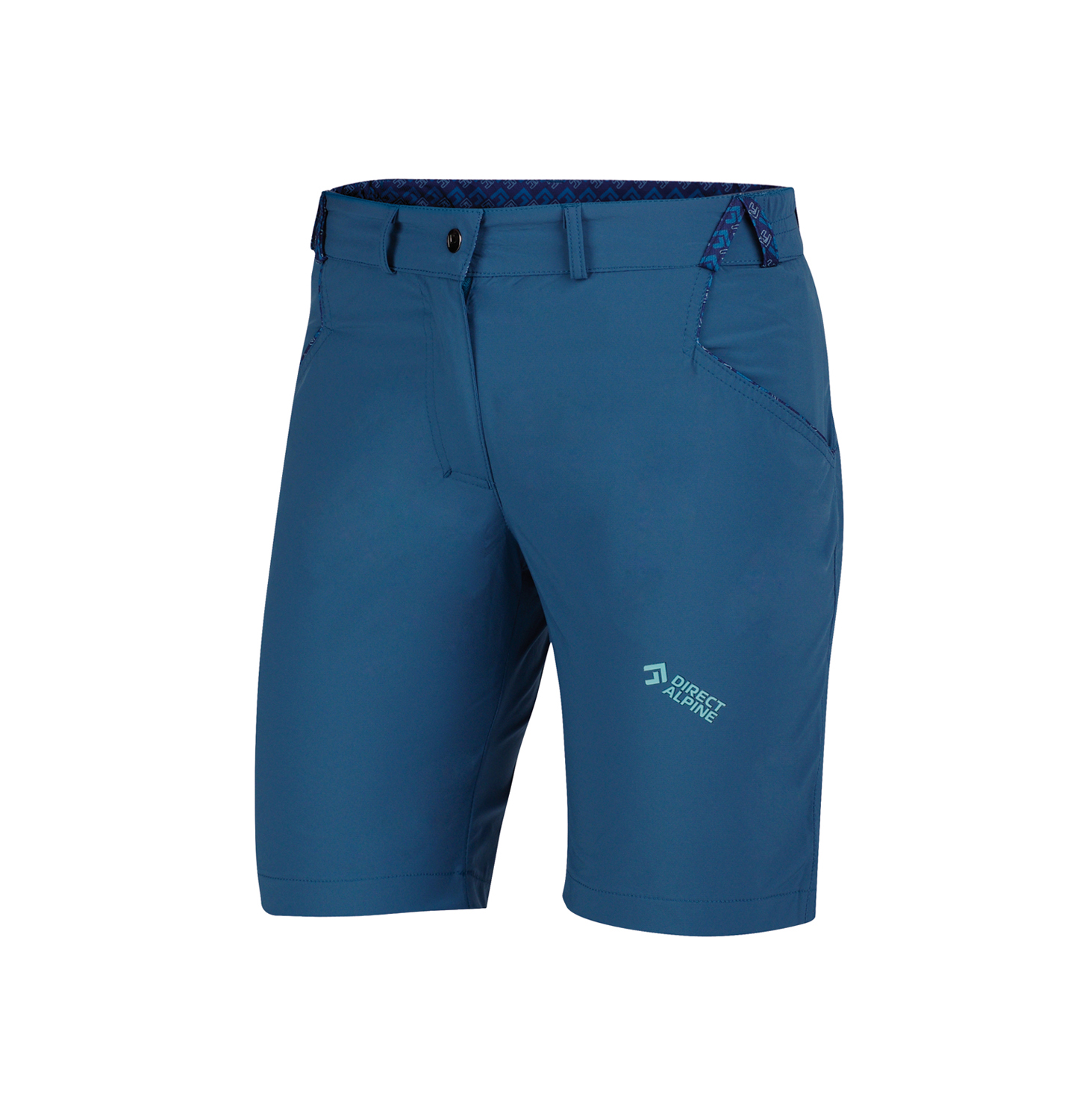 These new, functional, light, ladies shorts, Iris Lady Short, are the perfect choice for warm spring and summer days. The material used provides, elasticity, lightness, and wonderful freedom of movement. Their breathability and pleasant feel further contribute to wearer comfort. The quick-dry, non-iron finish means that you’ll always have these shorts ready for your next outing. They have a smooth design adorned with tasteful decorative elements – specially designed belt loops and decorative stitching around the pockets on the front panel. The stitched yoke section in the rear part, complements the female figure, optically reducing the seat area and concealing the pocket openings. The resulting effect is very interesting, untraditional and very feminine. The stretch fabric and simple sporty cut matches the curves of the female body. The pockets are made of a net material to reduce weight and provide ventilation. The longer leg length, to just a fraction above the knee, and the elasticated side panels around the waist, mean they will fit the majority of figure types. Recommended for running, hiking, climbing, trekking and travelling.