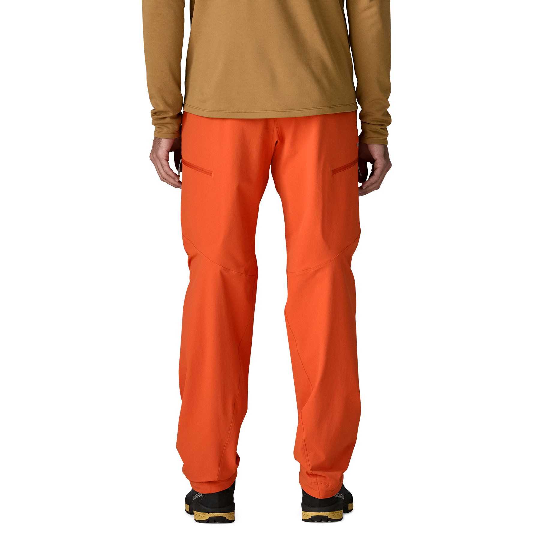 Two zippered thigh pockets stay clear of harness leg loops; one zippered back pocket keeps small items secure while on the move - Patterned for Climbing Mobility