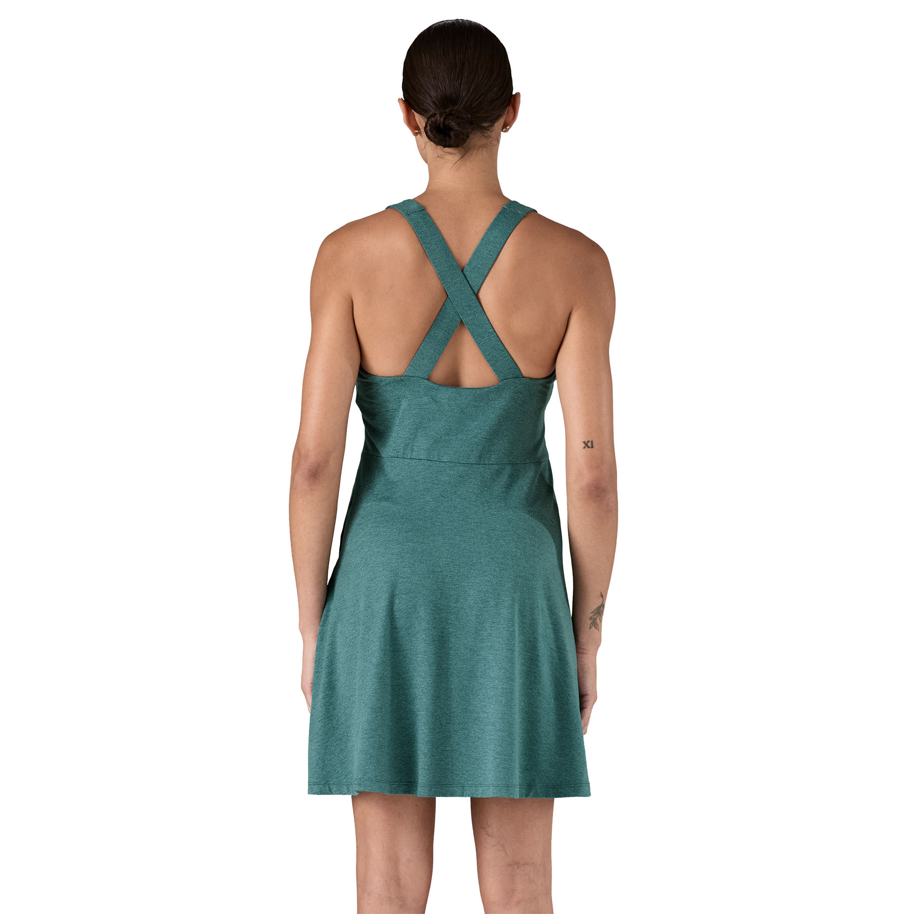 High-neck, slim-fit crossback dress with a built-in shelf bra