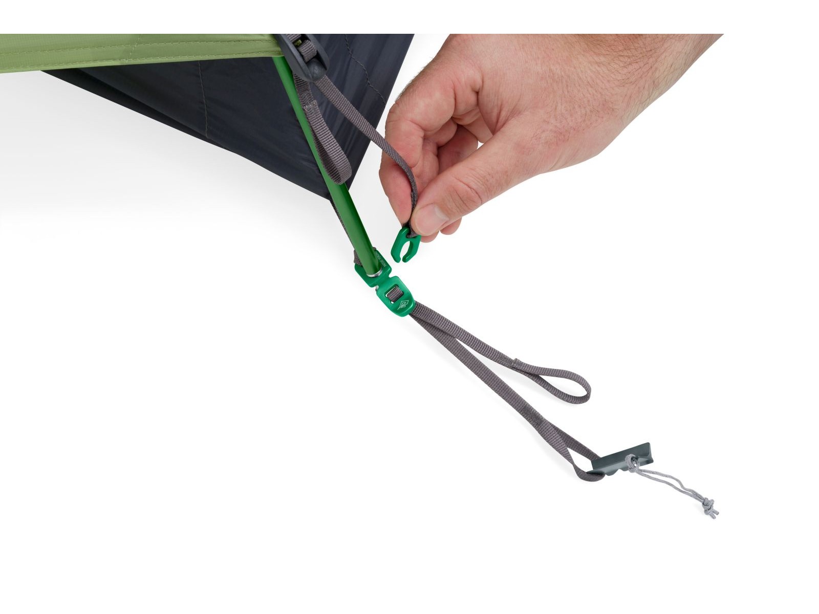 • 4 detachable guylines which can be quickly attached to loops on each tent corner.