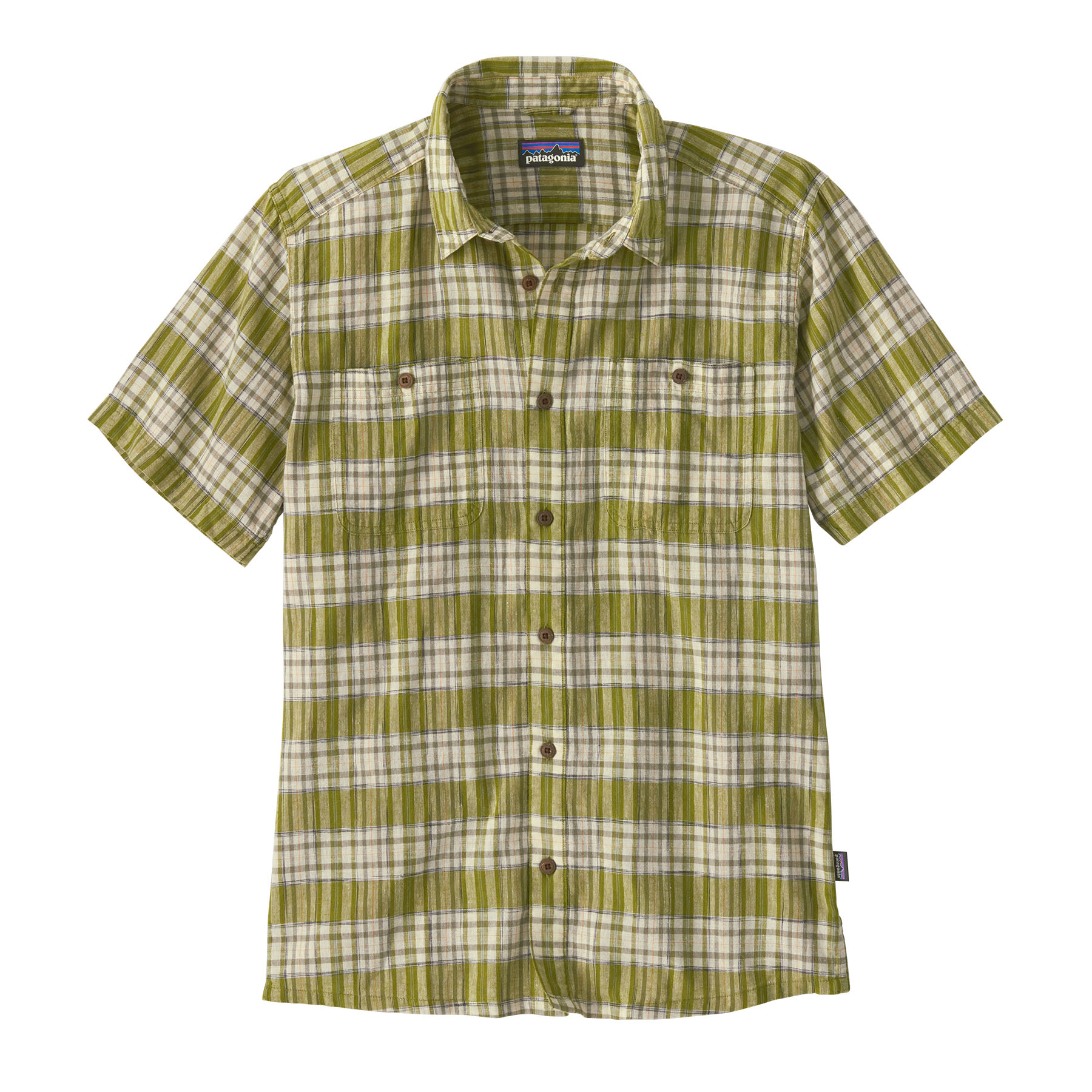 Buttons made of coconuts on the front placket and button-through chest pockets