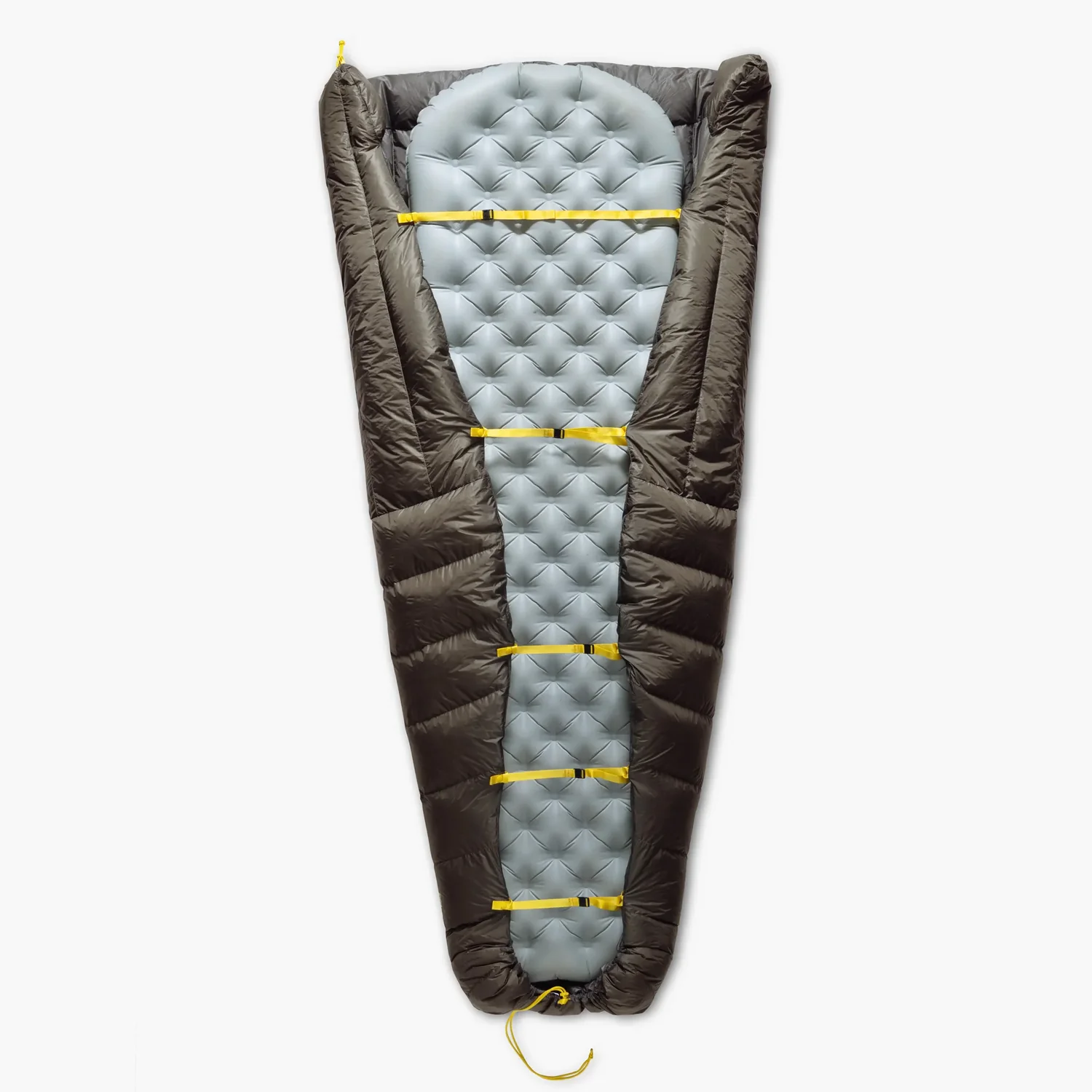• Construction 7°C: Sewn-through construction. Drawcord in the foot section. Open up to a quilt or cinch tightly to create a ‘foot pocket’. -1°C: Vertical chest baffles, horizontal baffles lower half, box wall baffle construction throughout.