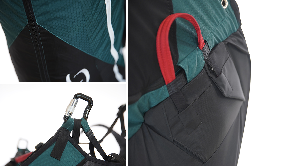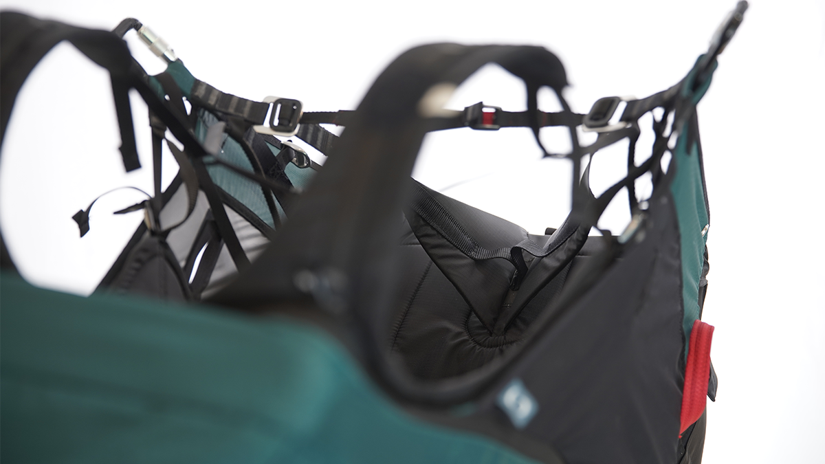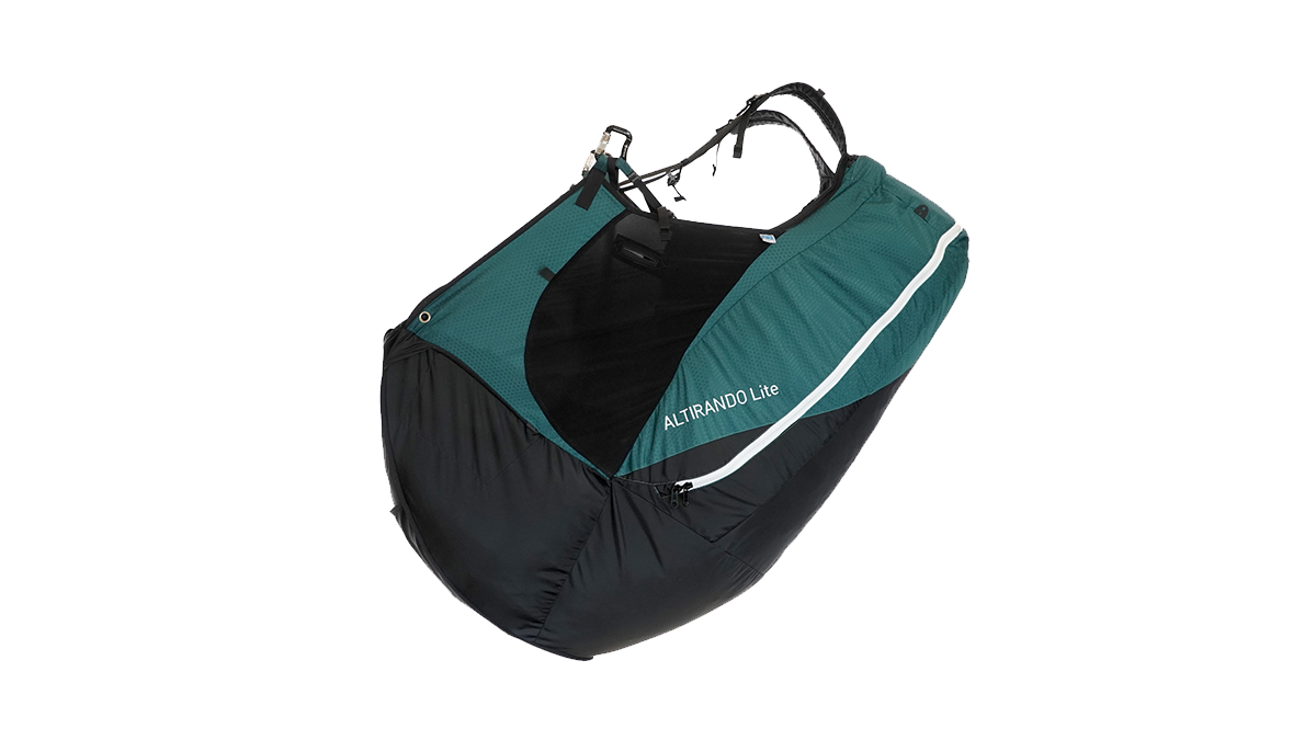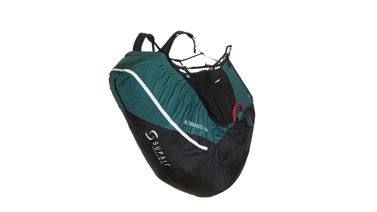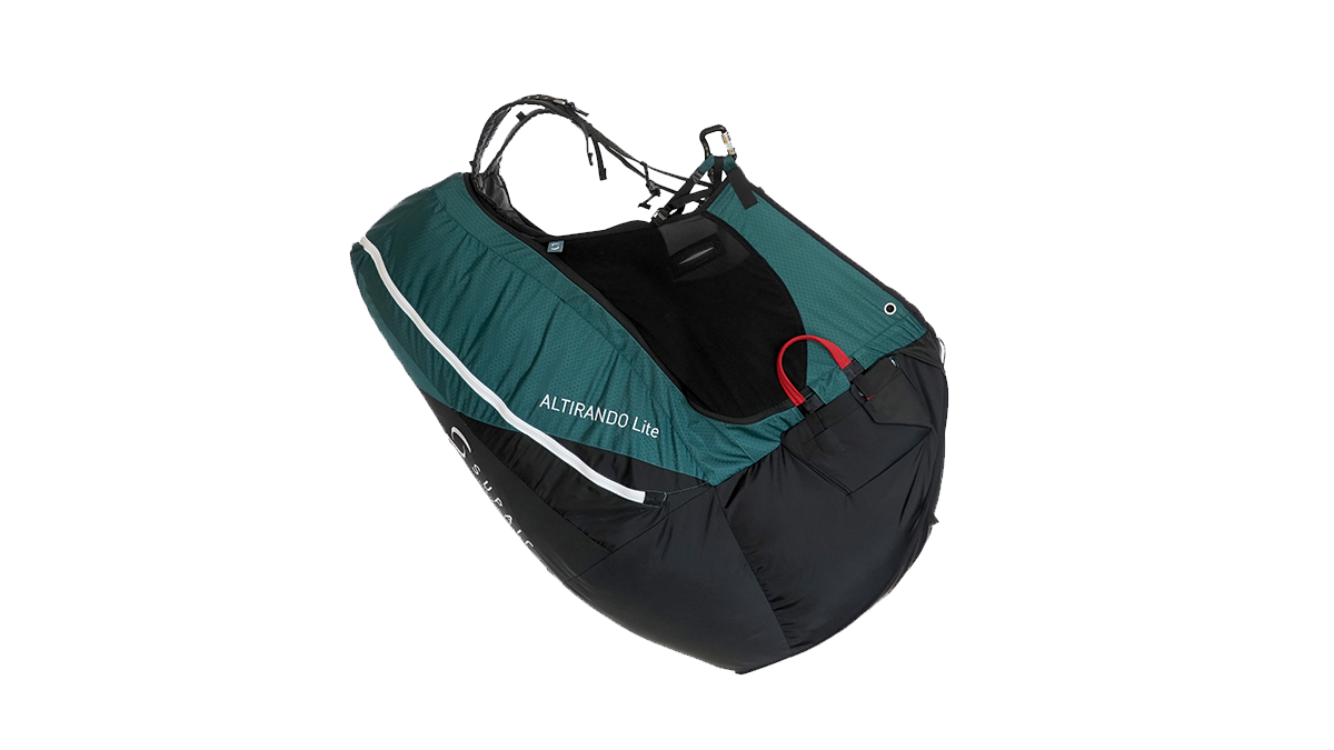 The Altirando Lite features a new airbag, pre-shaped straight out of the box thanks to a Nitinol hoop. This airbag is immediately reliable. The “Alti Lite” harness had great results during crash tests. Compared to the ALTIRANDO 3, the volume of the backpack has been improved and is fully suitable for light gliders in terms of capacity.