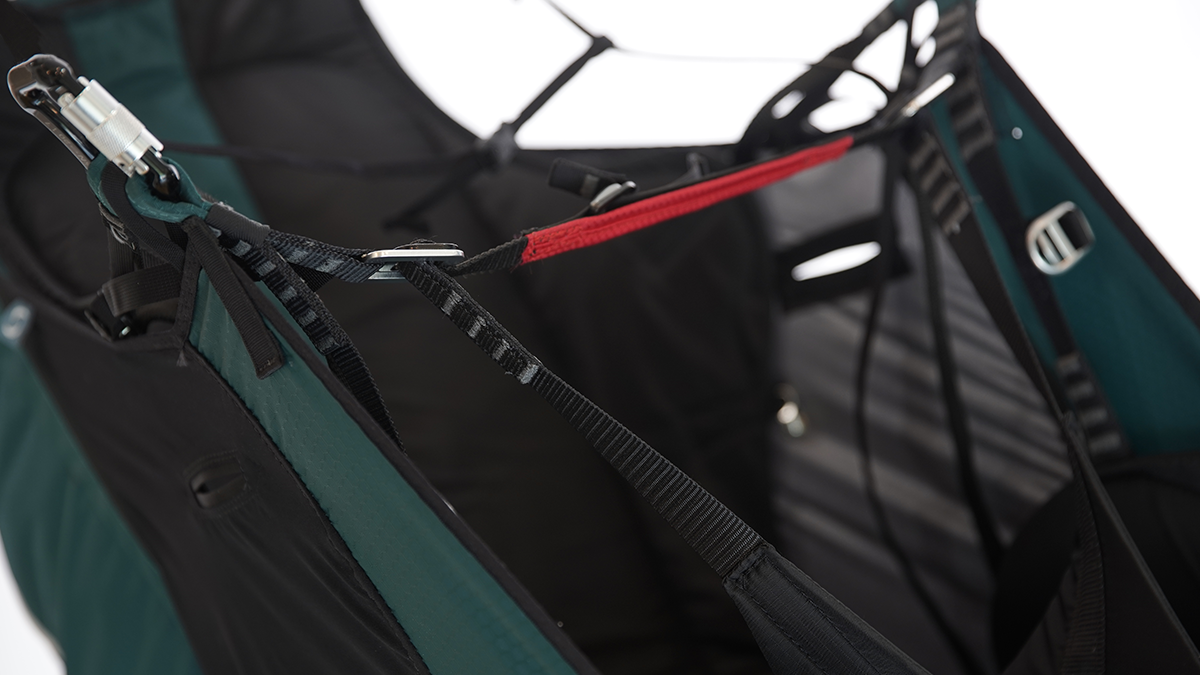 The harness is very stable but does not withhold the glider’s performance. The speedbar is easy to use thanks to efficient positioning of the pulleys.