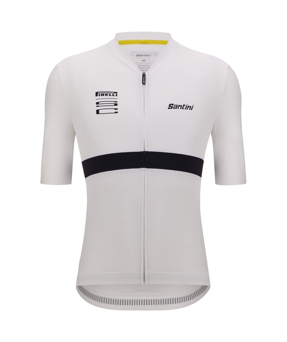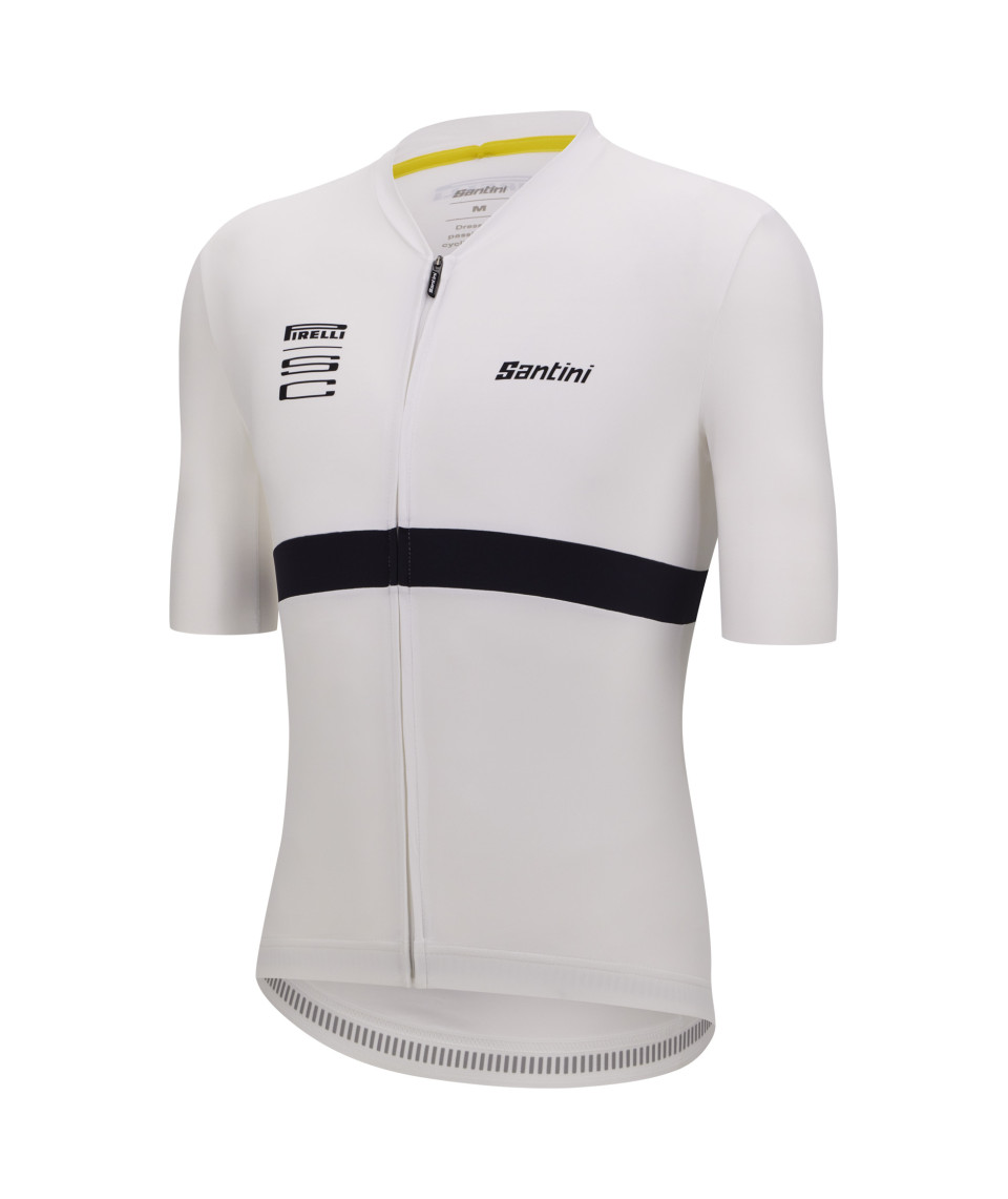 The Pirelli Sport Club jersey is a short-sleeved, clean and elegant shirt, with Pirelli's classic colors. The insert sewn around the body and inside the collar echoes the yellow stripe pattern of Pirelli tires.