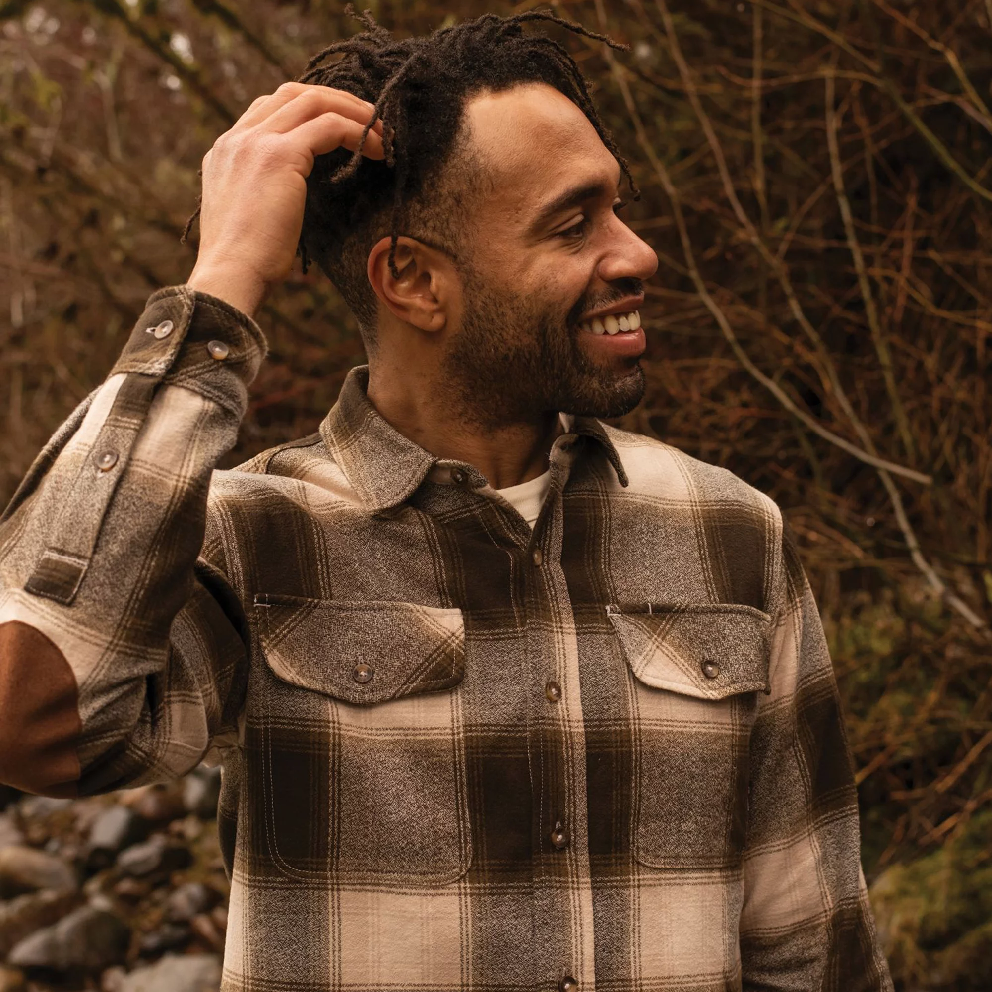 A modern take on the classic work-shirt, crafted from 100% cotton flannel with suede-reinforced elbow patches, double-needle stitching and flat-felled seams for durability. Features two chest pockets (one with a pen/sunglasses slot) and a vintage-inspired relaxed fit.