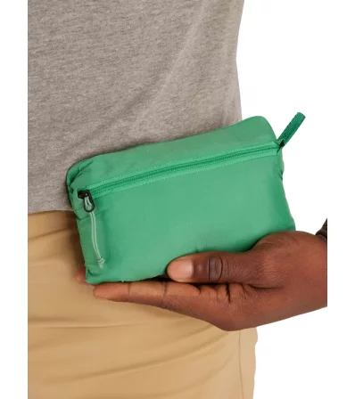 Looking for a fastpacking waterproof rain shell that's light on your back and the Earth? Look no further. This ultralight packable shell will fit into any tight corner, from your rucksack to your fanny pack, with a stuff-into-itself design that makes it easy to pack--or clip and grab--when space is slim and every ounce counts. Bio-based nylon ripstop fabric is thru-hike ready and Mother-Nature approved with 100% taped seams and water repellent coating to help keep you dry for hours or days on the trail--or just in a pinch on your morning commute.