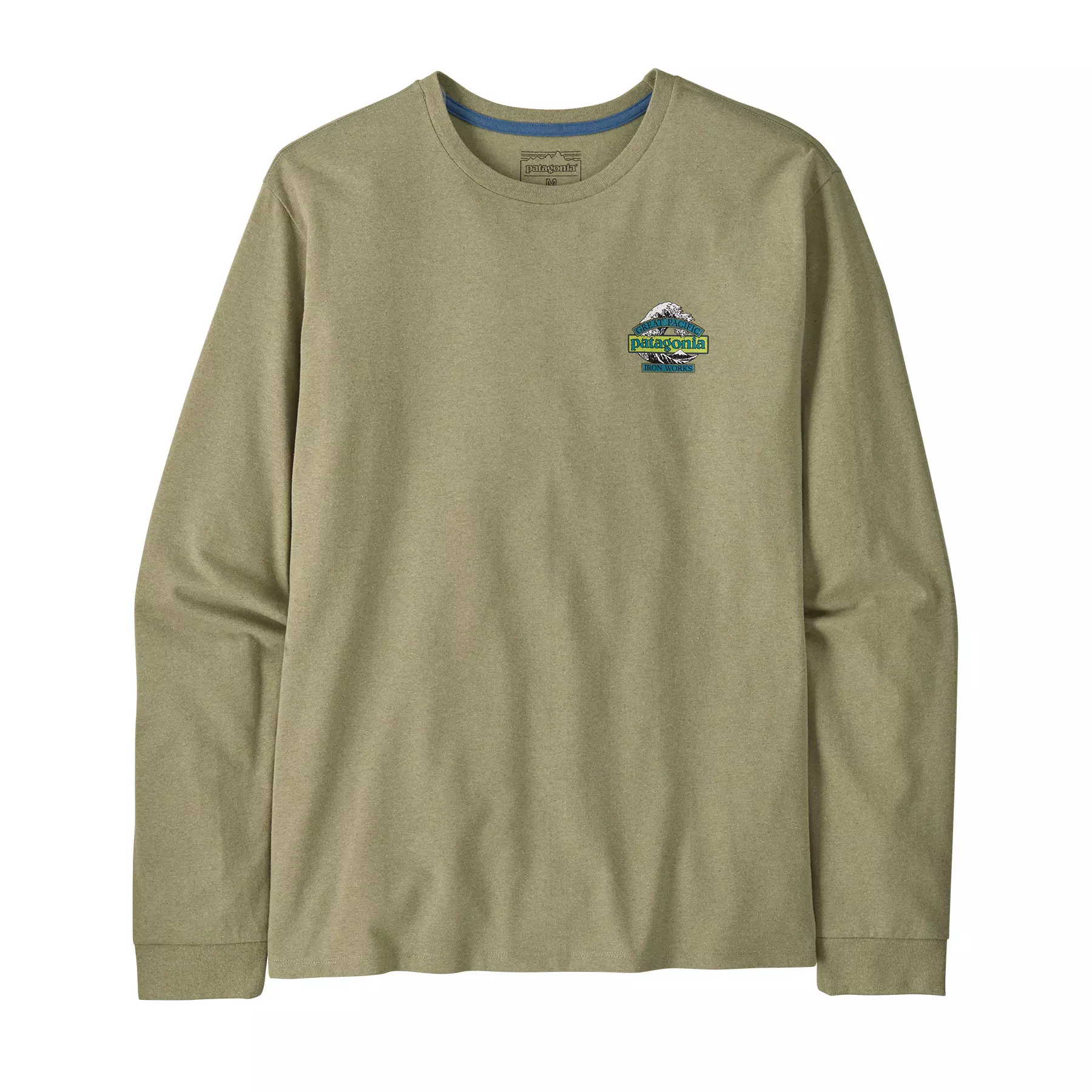 The Great Waves logo combines Patagonia’s wordmark with Hokusai’s iconic wave and Great Pacific Iron Works, the name of Patagonia’s first retail store, a short walk from some of the best waves in Ventura, California. It is screen-printed on the Men's Long-Sleeved Great Waves Responsibili-Tee®, a classic long-sleeved crewneck tee made from a soft, durable 50/50 blend of recycled cotton and postconsumer recycled polyester jersey. By using fabric scraps and recycled bottles, this 100% recycled garment reduces reliance on virgin raw materials. Know better; do better. Made in a Fair Trade Certified™ factory.