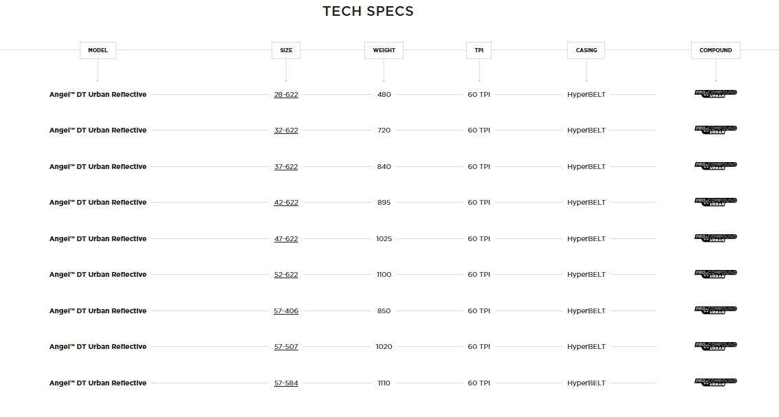 Technical details of the Pirelli Angel Urban DT wire bead tire