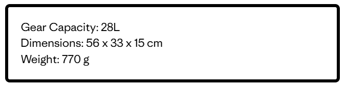Вдъхновеният от катеренето дизайн има точки за закрепване на обувки, допълнителна екипировка или бутилка с вода; раницата се изправя сама за лесно зареждане