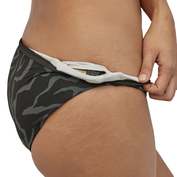 Aceste fundați de bikini de înaltă performanță, de înaltă performanță, prezintă o căptușeală din Nanogrip amestecată, care se fixează perfect pe piele, cu o tăietură clasică și o acoperire moderată pe scaun. Imprimeurile sunt 83% poliester reciclat / 17% elastan; solidele sunt 83% nailon reciclat / 17% elastan. Comerț echitabil Certificat ™ cusut.