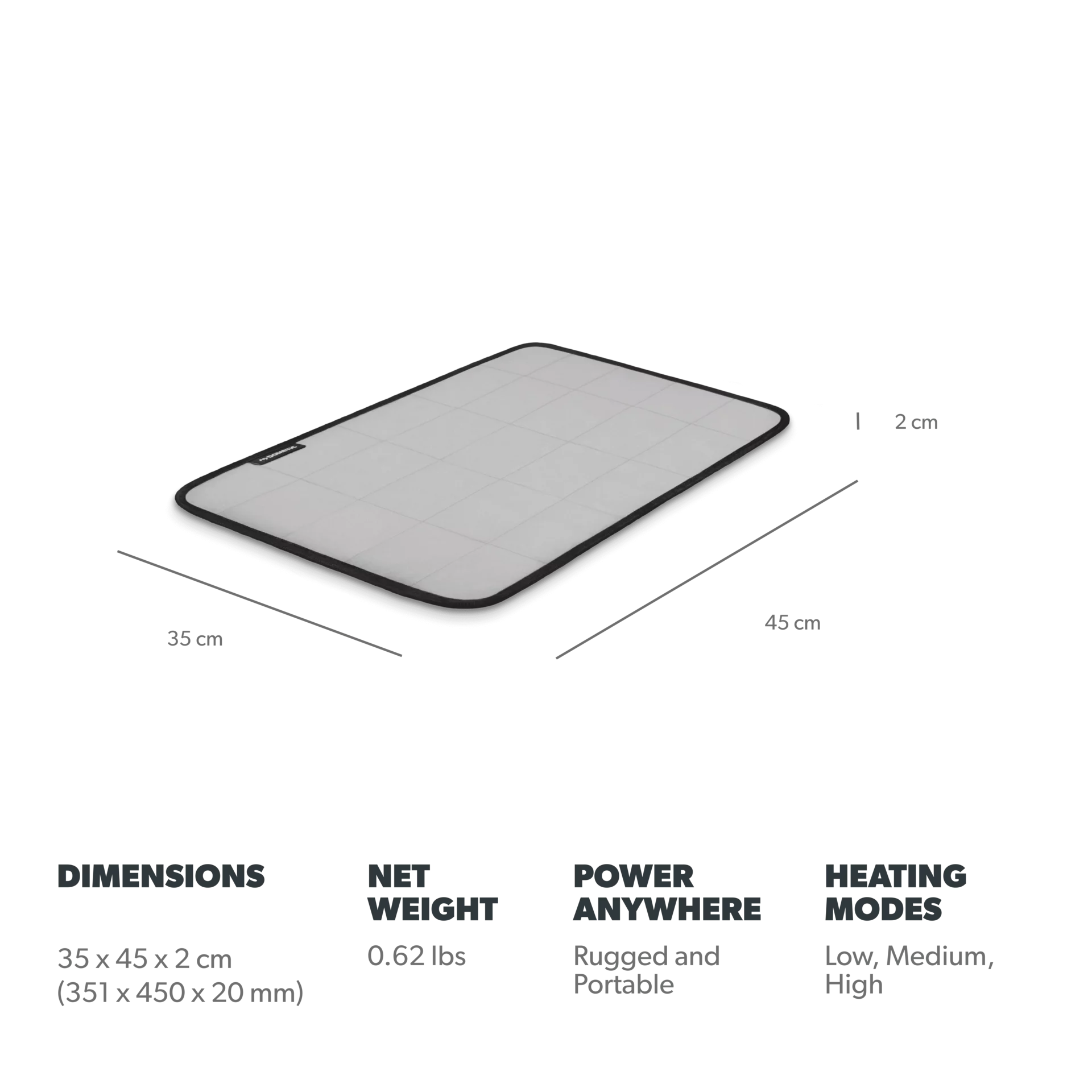 - Constructed from durable, waterproof fabric and efficient copper filament heating elements