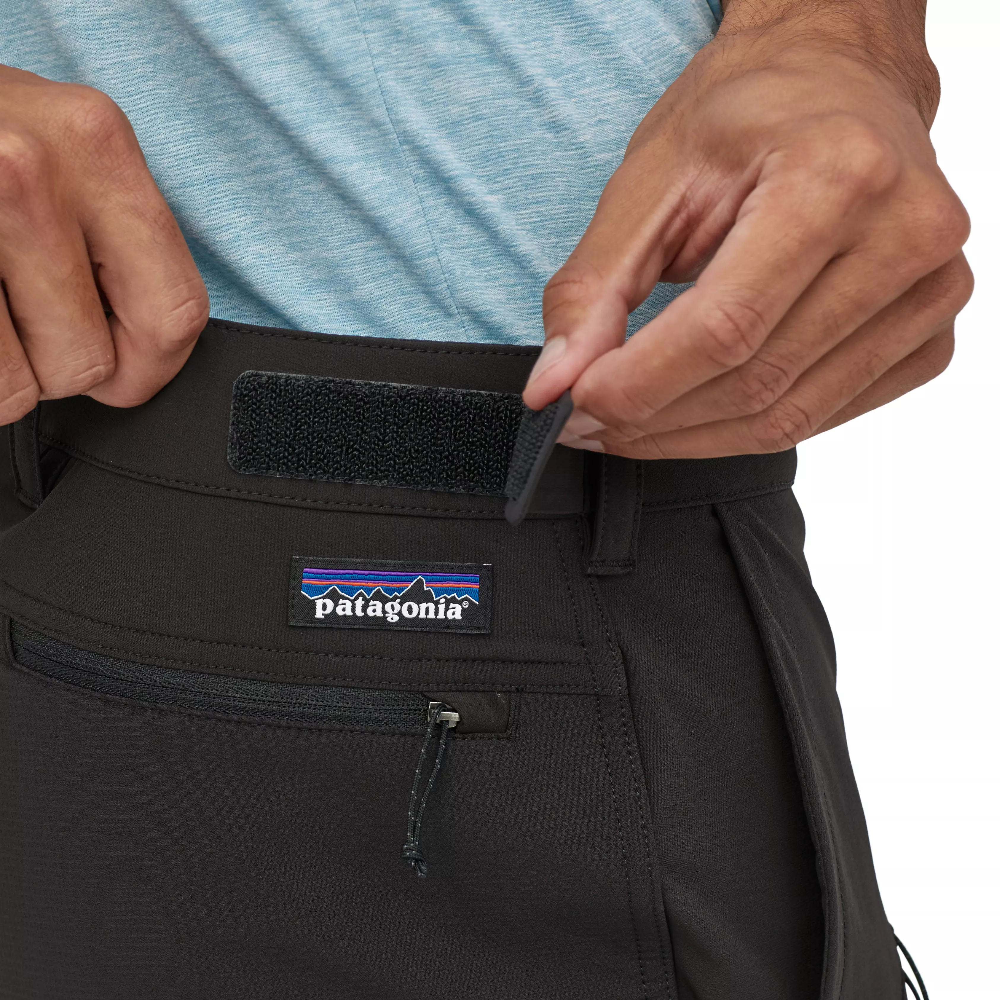 Waist and cuffs adjust with hook-and-loop tabs